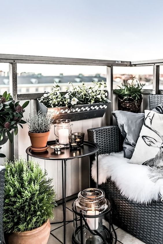 Otra idea que nos encanta es iluminar el balcón con velas, ¡qué bonito!