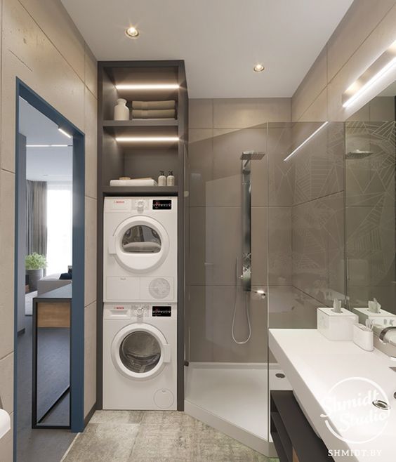 Finalizamos nuestro post de hoy animándote con este proyecto pues en contra de la instalación generalizada que se suele hacer en la cocina creemos que el baño es el lugar perfecto. Además apuntamos más alto y te sugerimos que integres también ¡la secadora! el espacio es el mismo si realizas una instalación en columna. Te mostramos imágenes para que veas que ¡es posible!